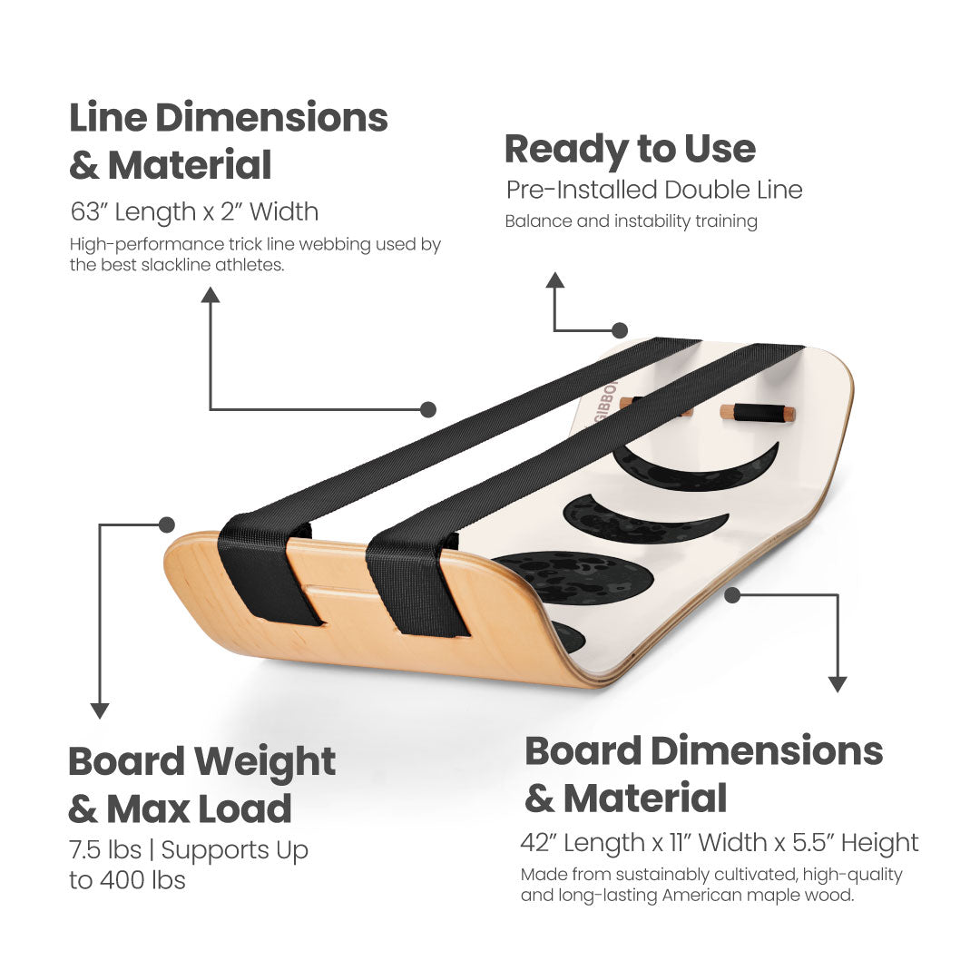 Le SlackBoard Plus s'appuie sur l'original, avec la possibilité de passer d'une configuration à deux lignes à une configuration à une ligne - idéal pour les enfants, la rééducation, les débutants ou l'entraînement avancé à l'instabilité.